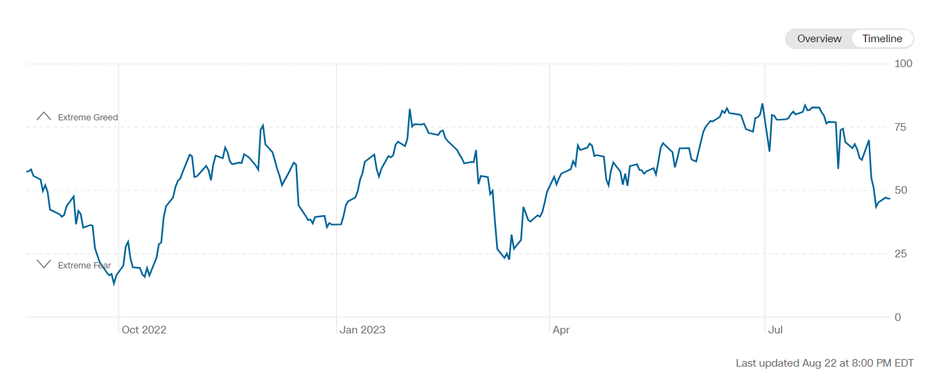 주식 투자를 잘 하기 위해서는 투자금이 적절한 타이밍에 잘 들어가고, 다시 적절한 타이밍에 수익 실현을 해야 합니다. 근데 이게 너무 어렵습니다. 올라갈 때는 마냥 올라갈 것 같고, 내려갈 때는 지금 들어가기에는 너무 위험해 보이니까요. 그래서 잘 들어가고 잘 나올려면 나의 감정을 통제할 수 있는 기준이 필요한 것입니다. 저는 이 기준을 공포와 탐욕 지수로 판단합니다.